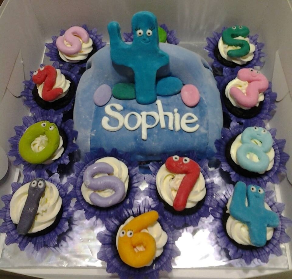 The birthday girl requested for a Numberjacks cake, so I carved the cake into the Numberjacks sofa and put up a big four. For the cupcakes, I topped them with all the numbers from the cartoon.