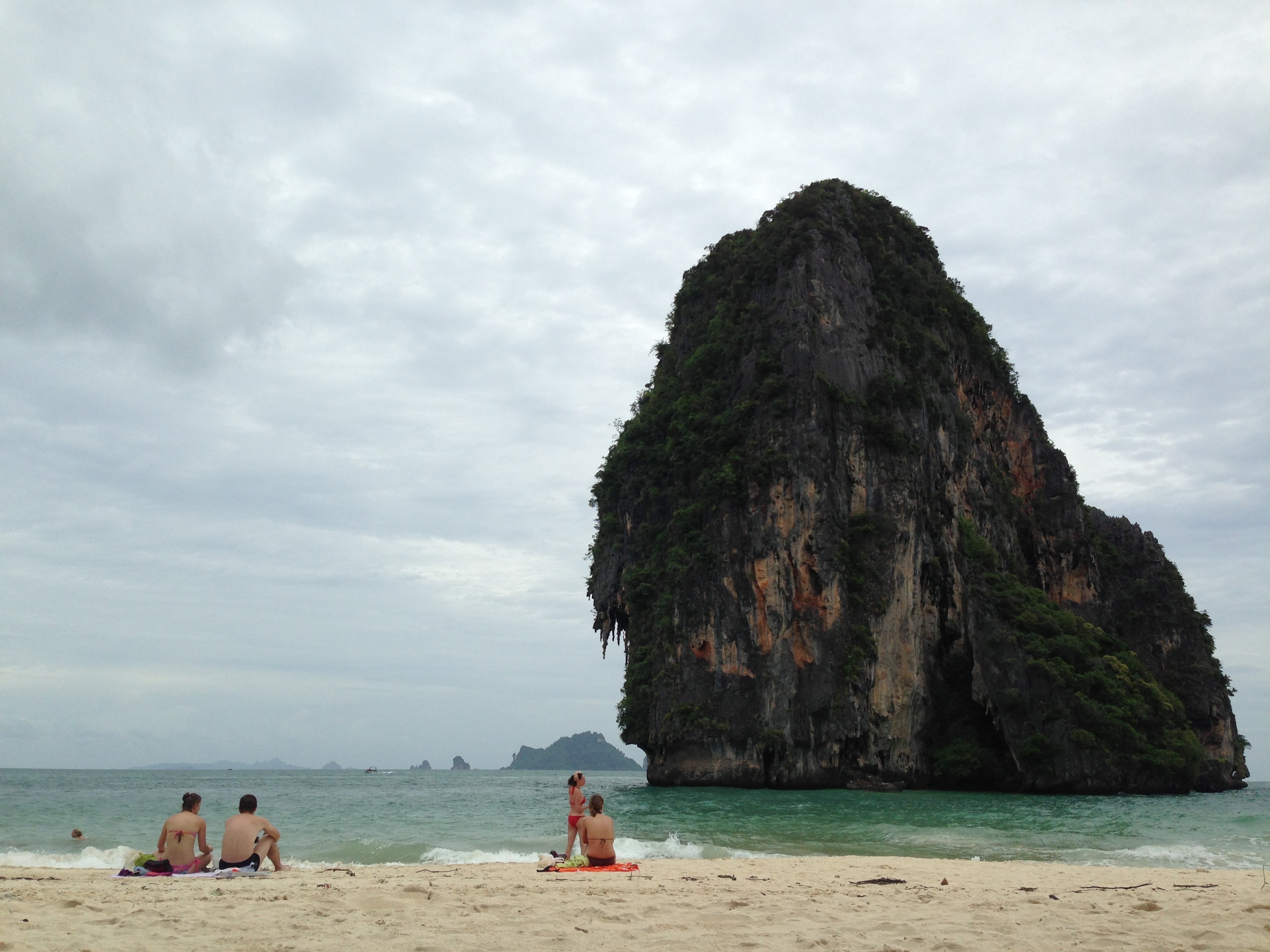 Phranang Beach. It is pretty, the waves are calmer as compared to the beach on Railay West, but I cannot in good conscience say it’s the best beach in Thailand. The sand on the beach is lovely and soft, but as you get into the water, there are tons of pebbles which hurt the feet and there are lots of debris in the water. Maybe it was the wrong season to be there, our loss. It was, however, enjoyable and the scenery was really nice and we were glad to be able to spend a whole day there soaking up the sun and jumping into the water when it got too hot.