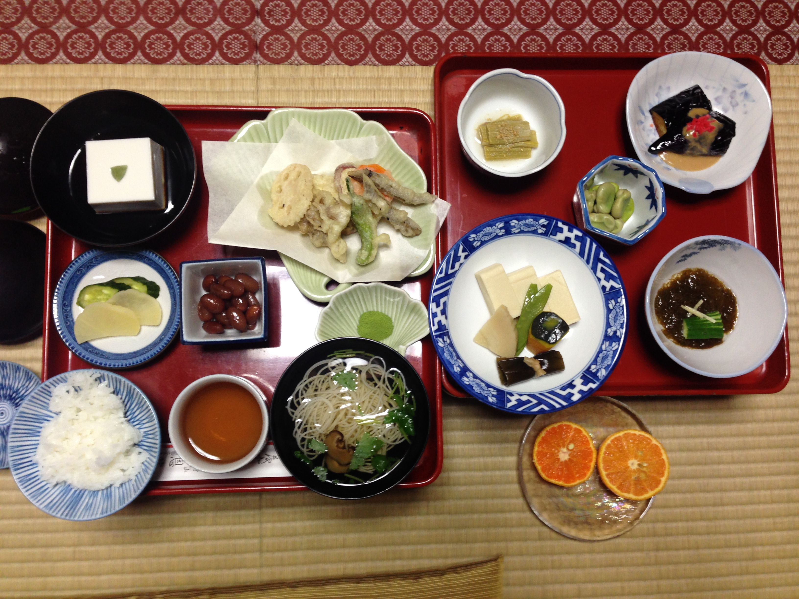 Temple stays are not cheap on Koyasan, starting from about US$100 per person per night, but it includes dinner and breakfast. As you may expect from a temple, meals are vegetarian (shojin ryori). Don’t worry if you are a dedicated meat eater though, the meals are so full of flavour, texture and visual delight that you will not mourn the lack of meat, at least for a day and a half. Surprisingly enough, they do serve alcohol with dinner, if you request for it. Our faces must have been so comical when the monk asked us if we wanted beer with our meal, we were literally speechless for a couple of seconds. It seems that whilst the monks do not partake, they have no issues with alcohol being consumed in temples.