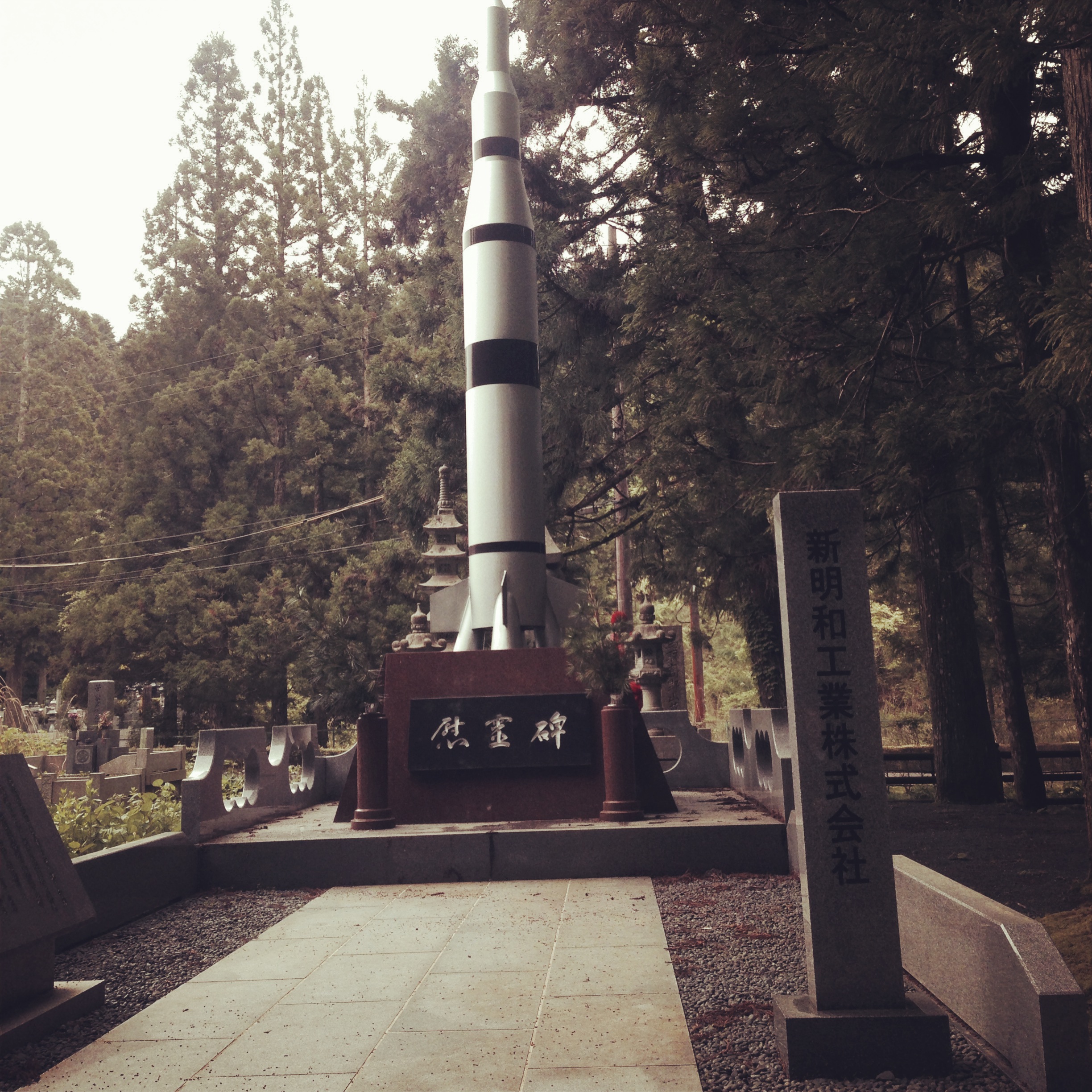 The main attraction of Koyasan is Okunoin, the site of Kobo Daishi’s mausoleum and the site of over 200,000 tombstones. Many call this a cemetery, but in actual fact, no bodies are buried there. You will however find grave markers belonging to famous feudal Japan era figures like Oda Nobunaga, Toyotomi, Hideyoshi, Takeda Shingen, Uesugi Kenshin, etc. I’m not a history buff (didn’t do too well in my Japanese history class in university -_-), but one of my favourite Japanese novel series is based on the warring period, so I was extremely tickled seeing these grave markers. Okunoin is one of the most peaceful places I have been to, the moment you cross the First Bridge (Ichinohashi), calm settled over me and it’s pretty awe-inspiring to know that these grave markers have remained untouched for 500 years or more. Okunoin has a newer part to it as well and many corporations actually put up tombstones for the companies. One of the more interesting tombstones I saw was this, shaped like a rocket.